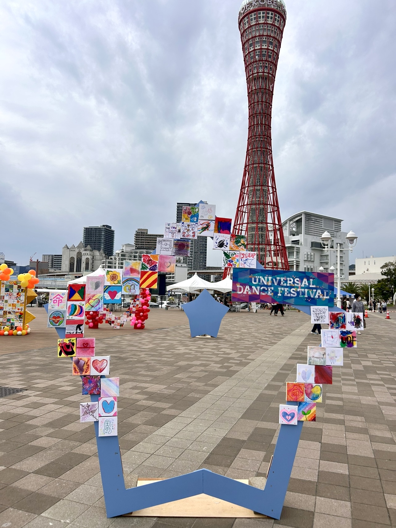 このオブジェはイベントのフォトスペースとしても活用され、神戸ポートタワーを背景に映える写真を撮影できる人気スポットに。子どもたちは自分の描いた絵と一緒に写真を撮って、とても嬉しそうでした。