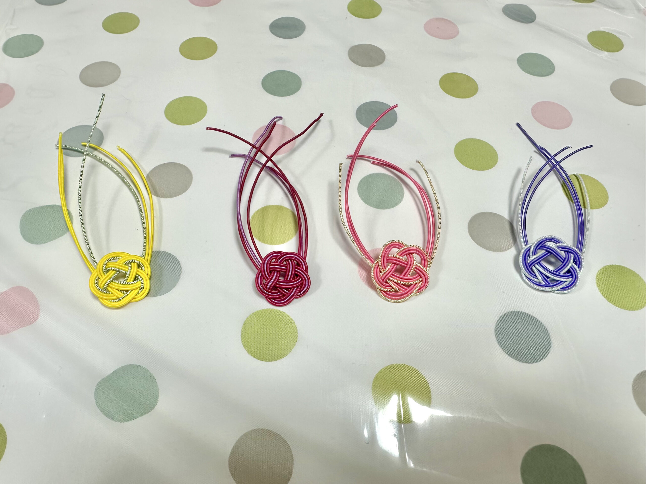 最初は水引をうまく曲げることが難しく、形を整えるのに時間がかかることもありましたが、回数を重ねるごとに少しずつコツをつかみ、きれいに結べるようになってきました✨