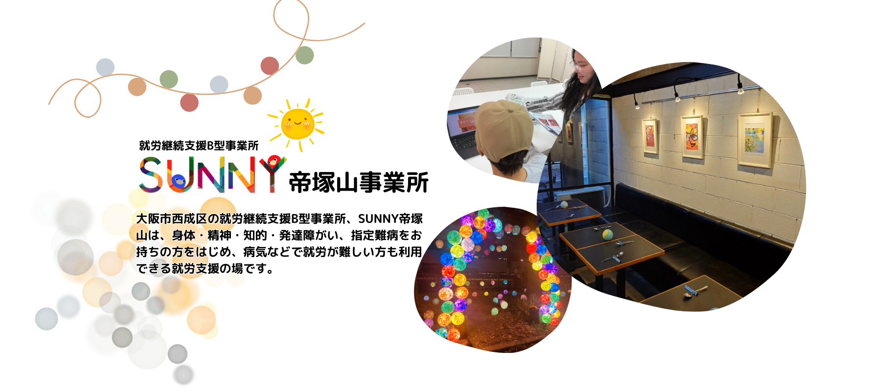 大阪市西成区の就労継続支援B型事業所、SUNNY帝塚山(サニーてづかやま)は、身体・精神・知的・発達障がい、指定難病をお持ちの方をはじめ、
